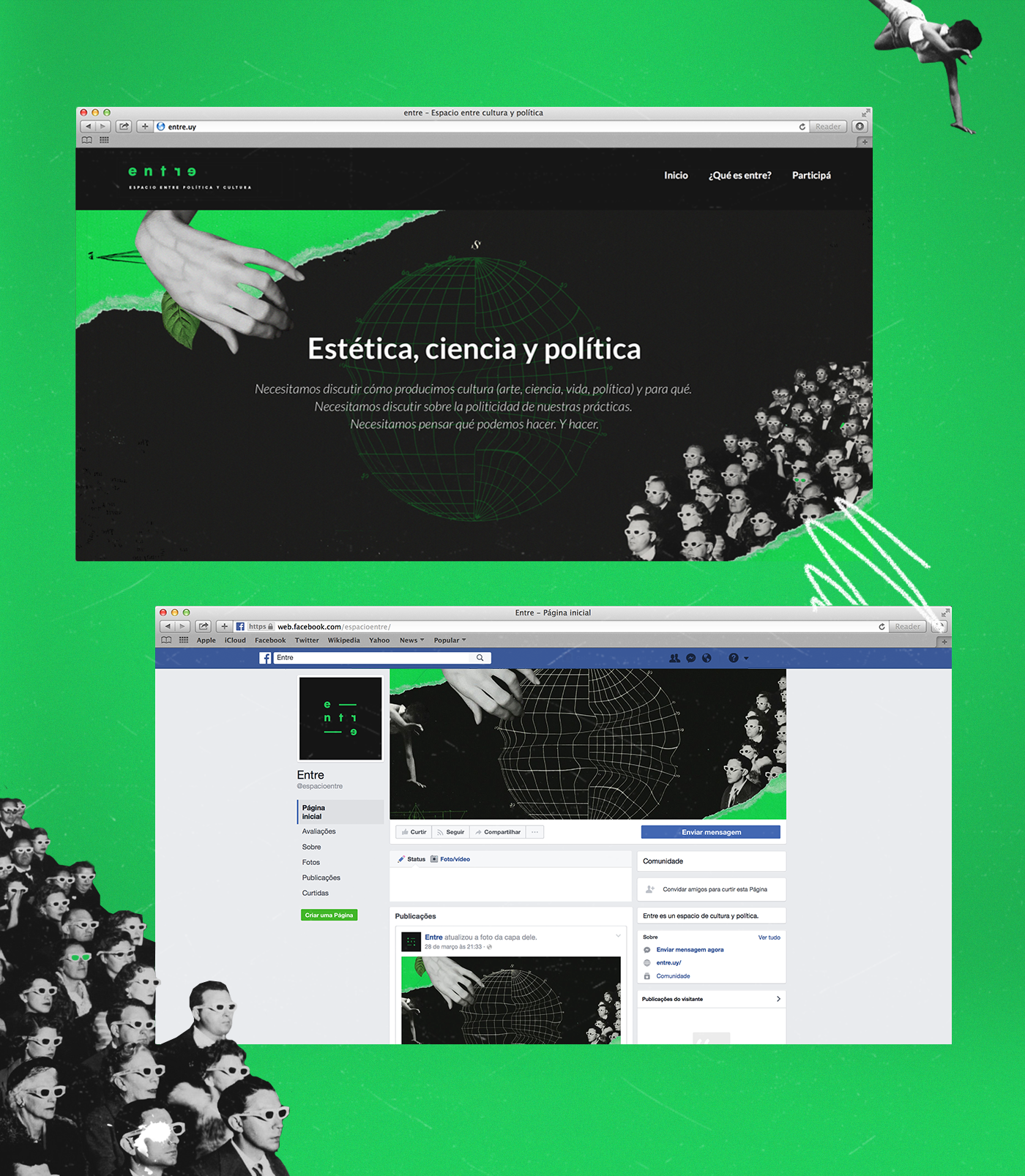 Identidad gráfica para Entre: un espacio creado para la discusión, la investigación, la formación, la creación, la acción, la divulgación y el encuentro entre mundos como el arte, la técnica, la academia y la militancia