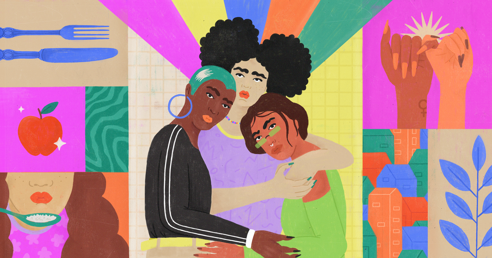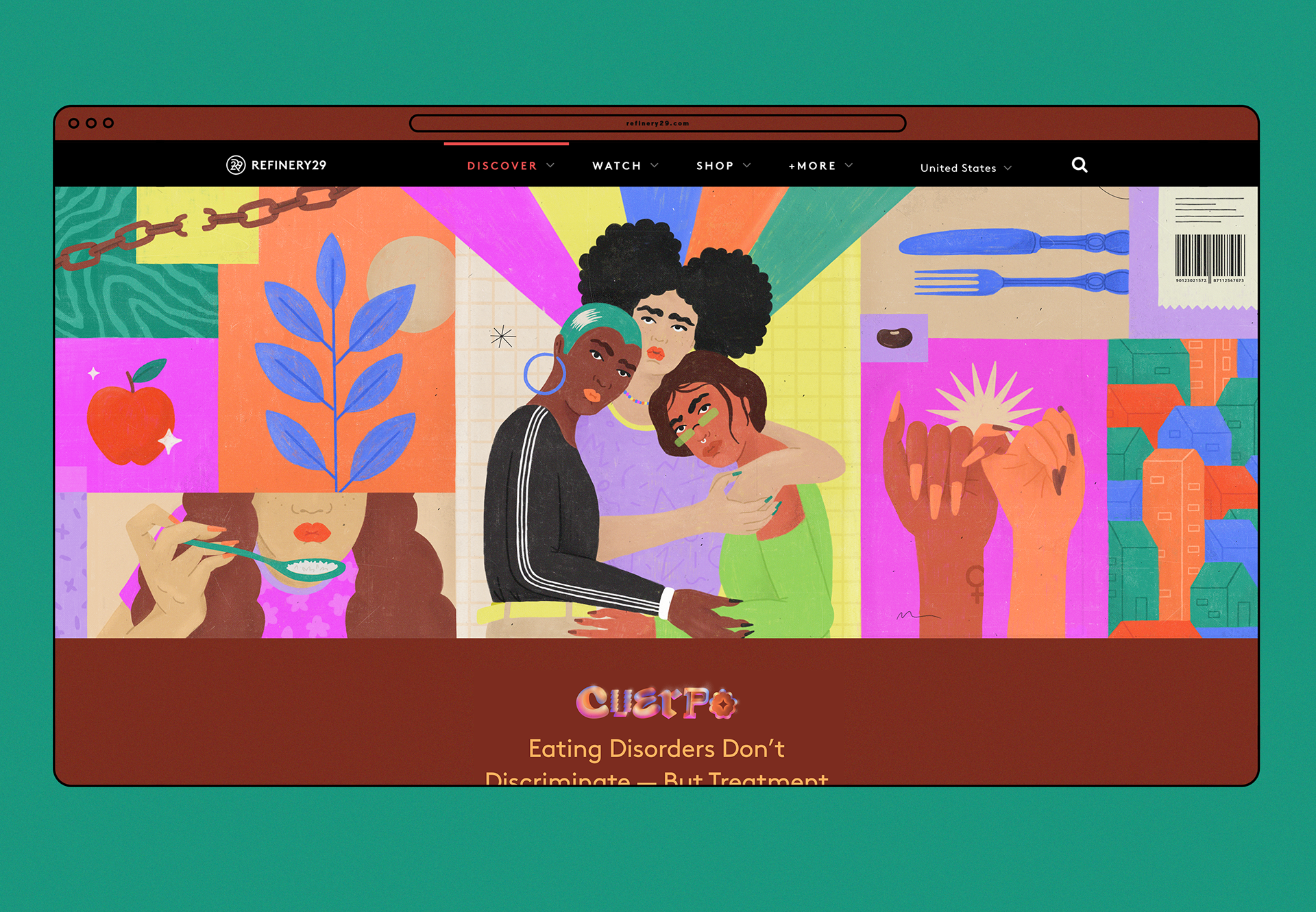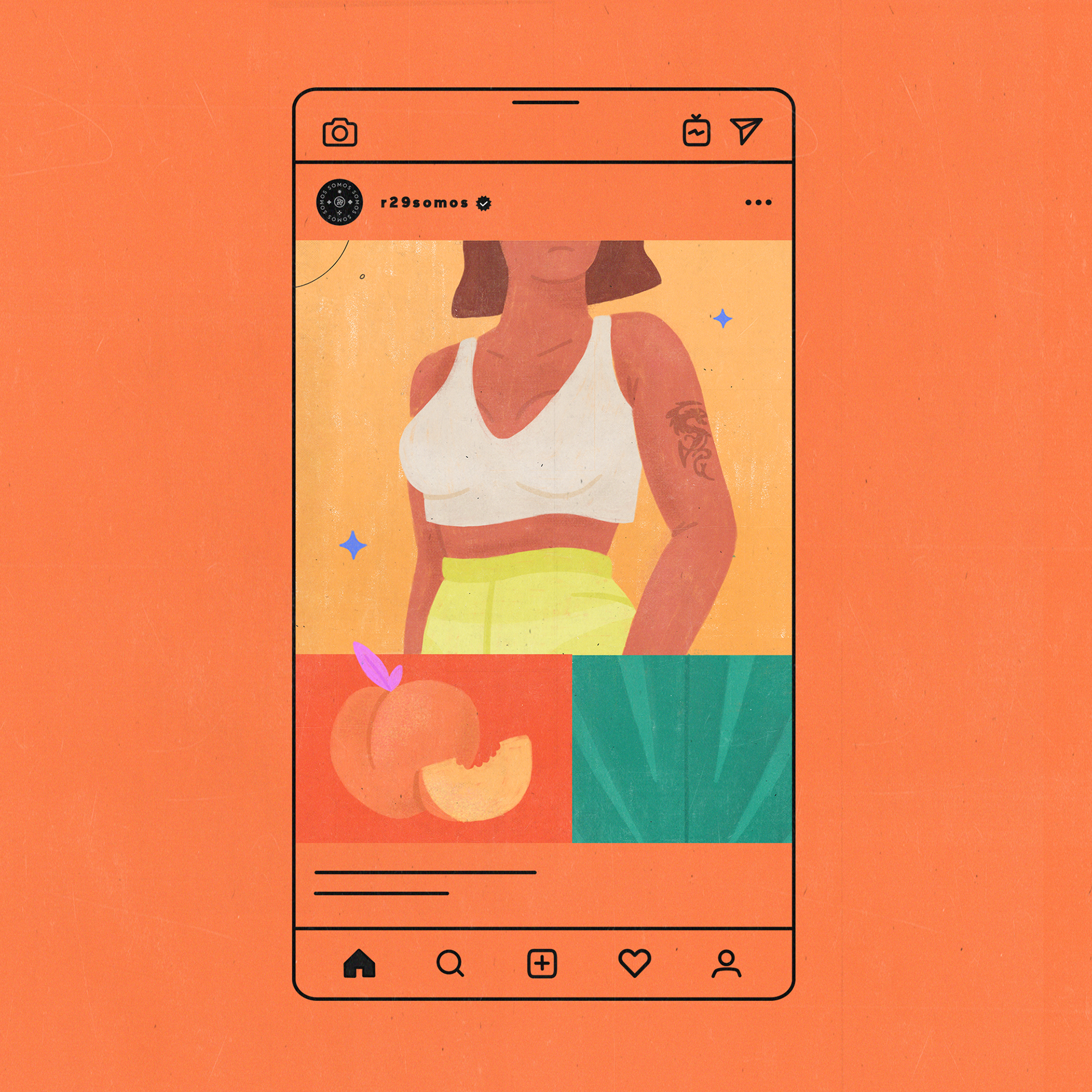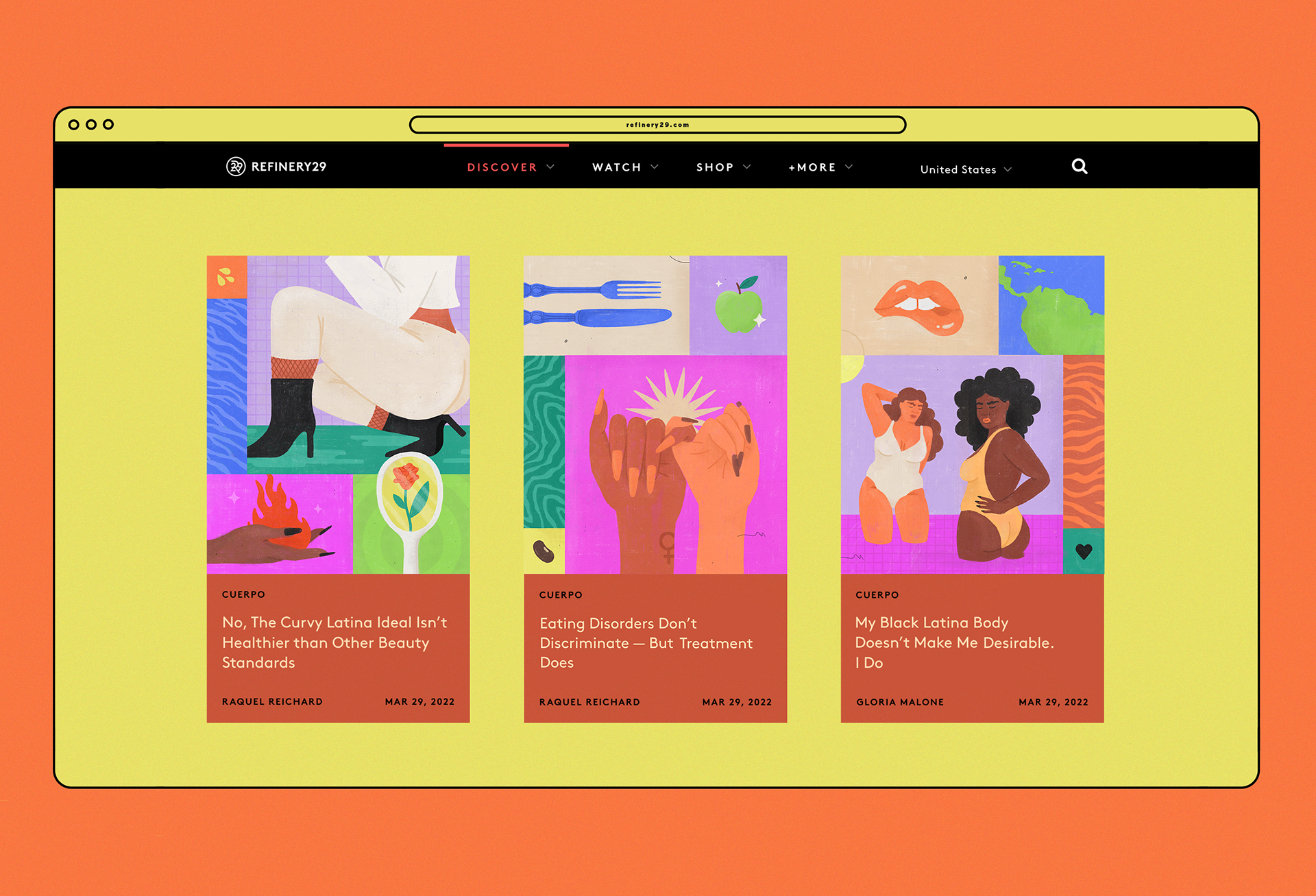 Ilustraciones para el lanzamiento de Cuerpo: latinxs exploring our varied relationships with our bodies and creating homes within ourselves de Somos, Refinery29